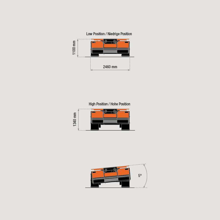 • Longitudinal leveling 8°/5°